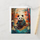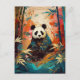 Ilustração gerada por IA de um Urso Panda e uma floresta colorida de bambu.