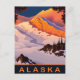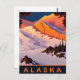 Poster do Alasca. Montanhas cobertas de neve. Viagem postal em cores vibrantes.