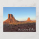 Este postal mostra o icônico Botão de West Mitten e Butte de East Mitten, que estão majesticamente em Monument Valley. Estas famosas formações de arenito criam uma paisagem desértica dramática e inesquecível, instantaneamente reconhecível a partir de inúmeros filmes e fotografias. É uma carta perfeita para amantes da paisagem ocidental americana, maravilhas naturais e destinos de viagem icônicos.