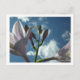 foto para cima de botões e flores do hosta, cartão postal, orientação horizontal, borda branca ao redor