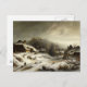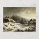 Pintura em vinheta de pessoas, edifícios e aldeia no inverno. Belas artes pelo artista alemão Anton Doll.