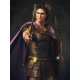 "Alexandre o Excelente" - Conquistador dos Impérios. Uma representação estilizada de Alexandre, o Excelente. Um jovem com vinte e poucos anos com olhos azuis perfurantes, confiante. Ele tem cabelo longo, castanho claro ou louro escuro, ondulado. Ele veste uma cunha de bronze (placa de massa) finamente trabalhada, adornada com gravuras intrincadas, possivelmente com cenas mitológicas ou símbolos de sua divindade. Sobre os ombros, ele veste um pequeno e fluente manto roxo (lamúrias) preso com um broche de ouro no ombro direito, simbolizando a realeza. Ele segura um hoplon (escudo) e uma lança em uma mão e uma representação estilizada de sua Kopis (espada) na outra. Uma coroa ouro rodeia sua cabeça, simbolizando sua reivindicação de ancestralidade divina.