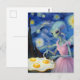 Cartão Postal Alienígena Azul Vestido Rosa Come Ovos Fritos Fals