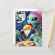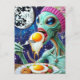 Uma alienígena comendo alguns ovos fritos e comidas de café da manhã