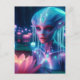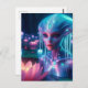 Uma natação de alienígena numa lagoa à noite com flores brilhantes bioluminescentes.