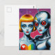 Cartão Postal Alienígena e Robô Apaixonados Arco-íris