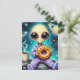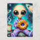 Uma Alienígena engraçada vestida de pjs com café e bagel matinais
