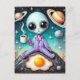 Cartão Postal Alienígena em PJs com café e ovo