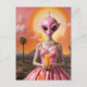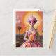 Cartão Postal Alienígena engraçada com suco laranja no deserto