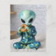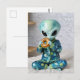 Cartão Postal Alienígena engraçada comendo uma sacola na cama