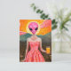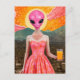 Cartão Postal Alienígena engraçada de rosa com suco laranja