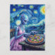 Cartão Postal Alienígena Fofa com Vestido Rosa Come Pizza Falso