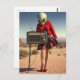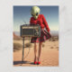 Cartão Postal Alienígena na saia Xadrez vermelha com rádio no de