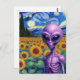 Cartão Postal Alienígena no campo girassol Faux Van Gogh