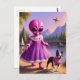 Cartão Postal Alienígena rosa caminhando com seu terrier de Bost