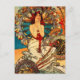 Alphone Mucha Mônaco Monte Carlo. Poster litográfico de 1897. O artista checo Alphonse Mucha é um dos maiores artistas do período Art Nouveau. Mônaco Monte Carlo continua sendo um de seus posters mais populares. O trabalho apresenta uma morena jovem em um vestido branco com faixa vermelha. Ela está cercada por uma coroa de flores vermelhas e azuis, folhas e pequenos pássaros. A menina veste flores vermelhas em seu cabelo e segura as mãos na boca. Um presente de excelente para fãs de Alphonse Mucha, art nouveau e posters vintage e anúncios.