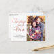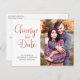 Cartões de Adiamento de Casamento de Script Moderno ou de Alteração de Data com a sua letra de foto e script de tendência em folha de ouro falso rosa. Se precisar de assistência ou itens correspondentes, entre em contato conosco em cedarandstring@gmail.com