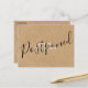 Este cartão de mudança de data kraft rústico elegante pode ser personalizado com as informações de adiamento. O verso tem detalhes adicionais, incluindo o seu site, com o seu endereço de retorno e espaço para o endereço do destinatário. Perfeito para casamentos, chá de noiva, chá de bebê, batismos, festas de noivado, celebrações de aniversário, formaturas, encontros de aniversário e outros eventos especiais ao longo do ano! Concebido por Thisisnotme©