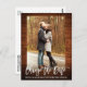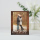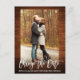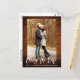 Escrito Moderno Em Pincel Alterar A Data Que O Casamento Adiou O Cartão-Postal De Foto Do Casal Rustic Wood