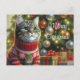 Cartão Postal Amante de gatos gato fofo pelo Natal Árvore