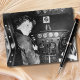 Cartão postal de aniversário temático de aviação com foto preta e branca de Amelia Earhart.