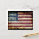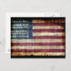 Bandeira americana meteorizada pintada em um prédio de madeira com um olhar resmungado