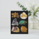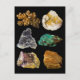 Fotografias de cobre dendrítico, meio geodoro, mica muscovita, malaquita verde, cristais ametistas roxos e barite cretida. Todas essas rochas são/contêm minerais. *Por padrão, defini este cartão postal para ser impresso em papel de acabamento de Matte não revestido. Você também pode escolher Semi-Gloss, mas o cartão-postal será impresso em um papel semirbrilhante em ambos os lados, que é um pouco mais difícil de escrever.