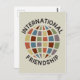 Cartão Postal Amizade Internacional com ícone colorido no globo