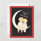 Amo-te ao cartão postal da Lua e do Back. Vintage boy e garota sobre a lua apaixonada, excelente de Dia de os namorados.