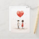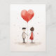 Uma ilustração minimalista e emocionante de um casal de mãos dadas, conectado por um balão vermelho em forma de coração que flutua sobre elas. A simples design, textura aquosa, e maleáveis manchas de cor em um fundo branco dão uma sensação suave e sonhadora ao trabalho de arte, simbolizando amor e união de uma forma pura e inocente.