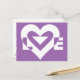 Um design de logotipo gráfico, feito sob medida. AMOR em branco em roxo.