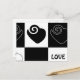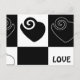 ilustração gráfica com corações em preto e branco
