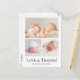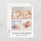Expresse gratidão com estilo com o cartão postal de agradecimento Simple Love and Thanks Typography Photo Grid Baby shower! Com um design limpo e um layout de grade de fotos, este cartão personalizável é perfeito para mostrar os momentos adoráveis do seu pequeno enquanto agradece amigos e familiares. Uma maneira sincera e moderna de compartilhar sua apreciação. Três fotos na frente em um estilo limpo e fresco com o nome do bebê e estatísticas de nascimento. Ícone de detalhe de coração. ©lddesignloft Entre em contato com info@lddesignloft.com se precisar de ajuda com este modelo.