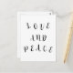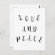 Palavras bonitas de letra de texto amam e paz em um fundo de cor simples.