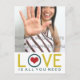 Cartões postais com o tema do Dia de os namorados Photo Postcard for Alguém Especial: "O amor é tudo o que você precisa". Dia de os namorados postal personalizado, fresco, brilhante, alegre e limpo, de 100%, de vermelho_dress, com design gráfico de amor lacrimogêneo e amarelo mostarda com coração vermelho - sobre um fundo branco personalizável - e as palavras, no final, "É tudo que você precisa". Insira fotos e crie cartões postais personalizados facilmente com suas imagens e citações de amor favoritas. A foto de exemplo usada é apenas para fins de ilustração. FOTO NÃO INCLUÍDA.