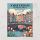 Capture o charme de Amsterdã com este cartão postal ilustrado de estilo antigo. Com as icônicas casas de canal da cidade, bicicletas e vias navegáveis pacíficas, este cartão postal é perfeito para entusiastas de viagens, colecionadores ou como um lembrete da Holanda. Envie um pedaço da Europa ou exiba-o como arte de parede única.