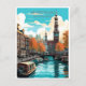 vintage, retro, viagem, moderna, aquarela, clássica, Holanda, Países Baixos, amesterdã,