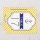 Cartão postal amarelo, listras brancas e ancoragem da mesa náutica de casamento. Um design de padrão na moda striped com faixas diagonais brancas amarelas, âncora de uma cinza com um coração e uma corda azuis e seu texto em um quadro com uma faixa azul marinho. Contemporâneo, mas com um olhar vintage, de certo modo. Você pode alterar o plano de fundo e a cor do texto escolhendo entre mais de 200 cores do gráfico de cores do Zazzle. Este design de classe é um modelo completamente personalizável e faz parte de um casamento perfeito para um casamento de verão.