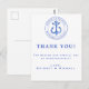 Cartão Postal Âncora Náutica Azul | Agradecimento de Casamento