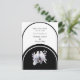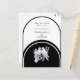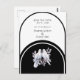 Arranjou dois conjuntos coloridos de convites para casamento, em preto e branco. Esta opção para salvar a data card corresponde ao convite do mesmo design. Um par de pombas brancas segurando o conjunto de anéis de casamento completa esta design. Também vem em outros conjuntos de cores.