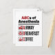 O design de Anestesiologista é um presente perfeito para anestesiologista, médico de anestesiologia ou enfermeira CRNA que trabalha com anestesia em cirurgia ou sala de operação. O design engraçado diz: "ABCs da anestesia: via aérea, café da manhã, café"