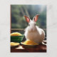 Um belo coelho Angora com espaguete AI gerou arte para um restaurante italiano