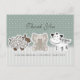 Cartão de agradecimento do Chá de Bebê. Com bolinhas verdes e listras cinzas com estes adoráveis animais de desenho animado, como ovelhas, elefantes e zebras. Impressione seus convidados com este lindo cartão. Se precisar de ajuda, por favor entre em contato.