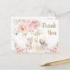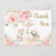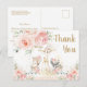 Cartão Postal Animais da Floresta Floral Rosa Bebê Agradecimento