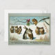 Cartão postal de Natal Animais de visco vitorianos. Imagem vitoriana vintage restaurada personalizada de alta qualidade.
