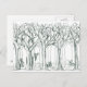 Um cartão de posto do inverno com caneta preta e desenho a tinta de uma floresta com animais da floresta, incluindo coelhos e cervos na neve.