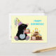 toupeira de cartoon segurando um pedaço de bolo de aniversário. Feliz aniversário.Ilustração infantil