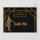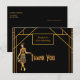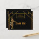 Na frente: Ouro falso elegante e brilho para uma festa de aniversário do estilo 1920! Um cartões de agradecimentos de festa de aniversário do estilo art deco em ouro falso e preto para uma celebração glamourosa. Decorada com uma garota de papel de flapper estilo 1920 e um quadro de estilo de decoração de arte. Modelo para seu texto e sua idade. Com o texto: Obrigado de volta: Modelo pela sua nota de agradecimento e nome/nomes Perfeitos para uma festa de aniversário, aniversário, casamento, chá de panela ou chá de fraldas.