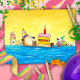 Todos os pequenos lontras-marinhas vieram para uma divertida festa de aniversário! Um cartão de aniversário de lontra-marinha pintado à mão em estilo de desenho animado.