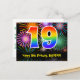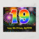 Cartão Postal Aniversário de 19 anos – Padrão Divertido de Fogos